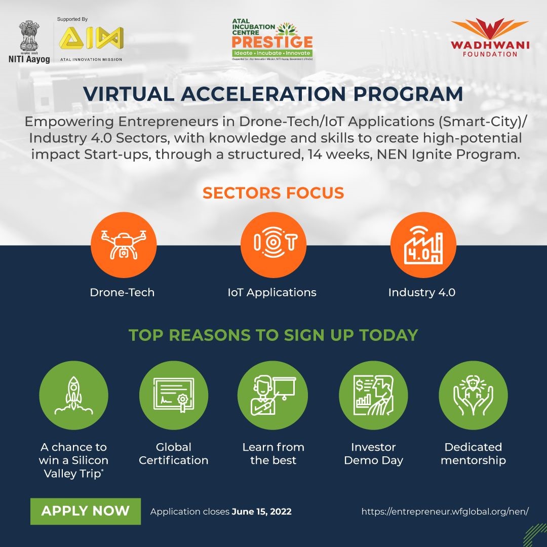 AIC-Prestige Inspire Foundation in association with National Entrepreneurship Network | Wadhwani Foundation invites startups building innovative solutions in the domain of Drone-tech/IoT Applications (Smart-City Solutions)/Industry […]